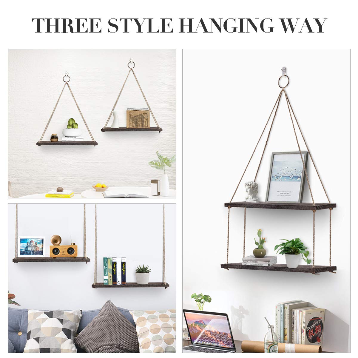 Shop for rustic hanging shelves online at target. The material of the shelf is crucial, especially when it comes to aesthetics. Can be accented with chicken wire. Mini hanging shelves with macrame cords and ropes and with tassels are nice to hold planters.