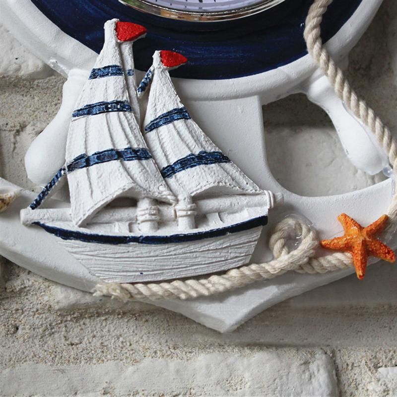 Mediterranean steering wheel ancor wall clock in blue and white ornament f. Boat steering wheel shape clock features fish sailboats & rope accents on blue painted wood nautical clocks. The cockpit is the nerve center of any boat.